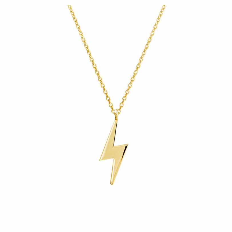 Ένα μοντέρνο καθημερινό γυναικείο κολιέ από κίτρινο χρυσό Κ9 με έναν κρεμαστό κεραυνό.
