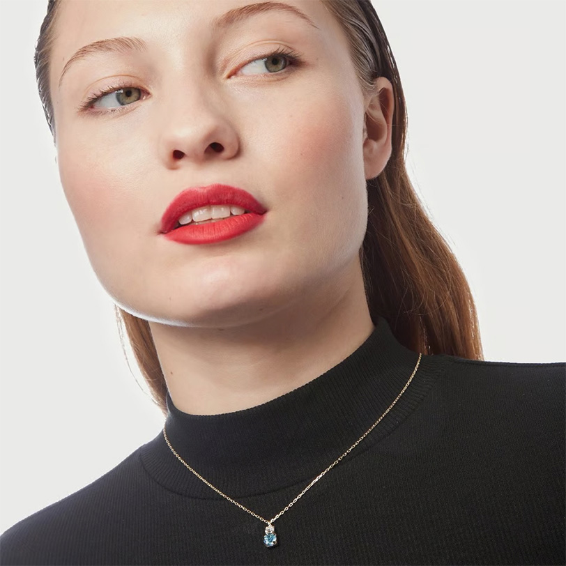 Μοντέρνο γυναικείο κολιέ από επιχρυσωμένο ασήμι 925 κρεμαστό με πέτρες Swarovski, μία γαλάζια και μία λευκή.