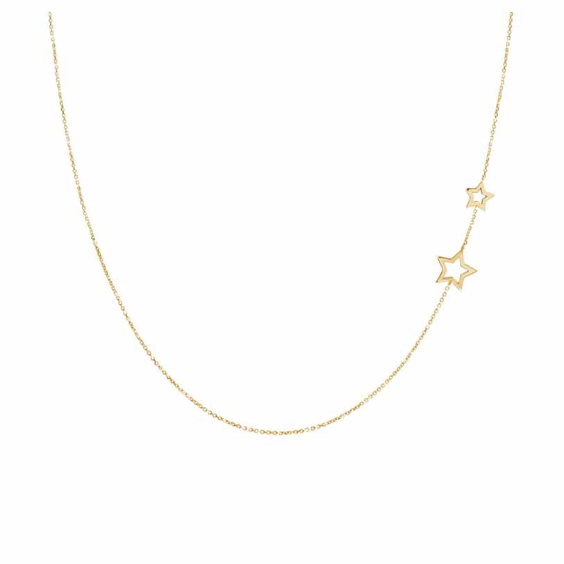 Ένα μοντέρνο καθημερινό γυναικείο κολιέ από κίτρινο χρυσό Κ9 με δύο αστέρια ενσωματωμένα στην αλυσίδα.