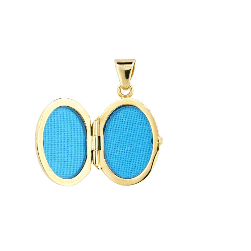 Το μενταγιόν ανοίγει και εσωτερικά διαθέτει δύο χώρους με γαλάζιο φόντο που υποδέχονται δύο φωτογραφίες.