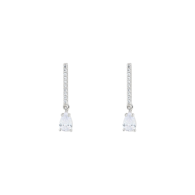 Κρεμαστά σκουλαρίκια από λευκόχρυσο Κ14 με δάκρυ και σειρέ από ζιργκόν.