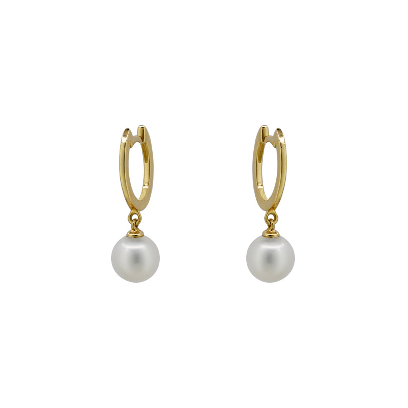 Κρεμαστά σκουλαρίκια από κίτρινο χρυσό Κ14 με μαργαριτάρι κρεμαστό σε κρίκο.