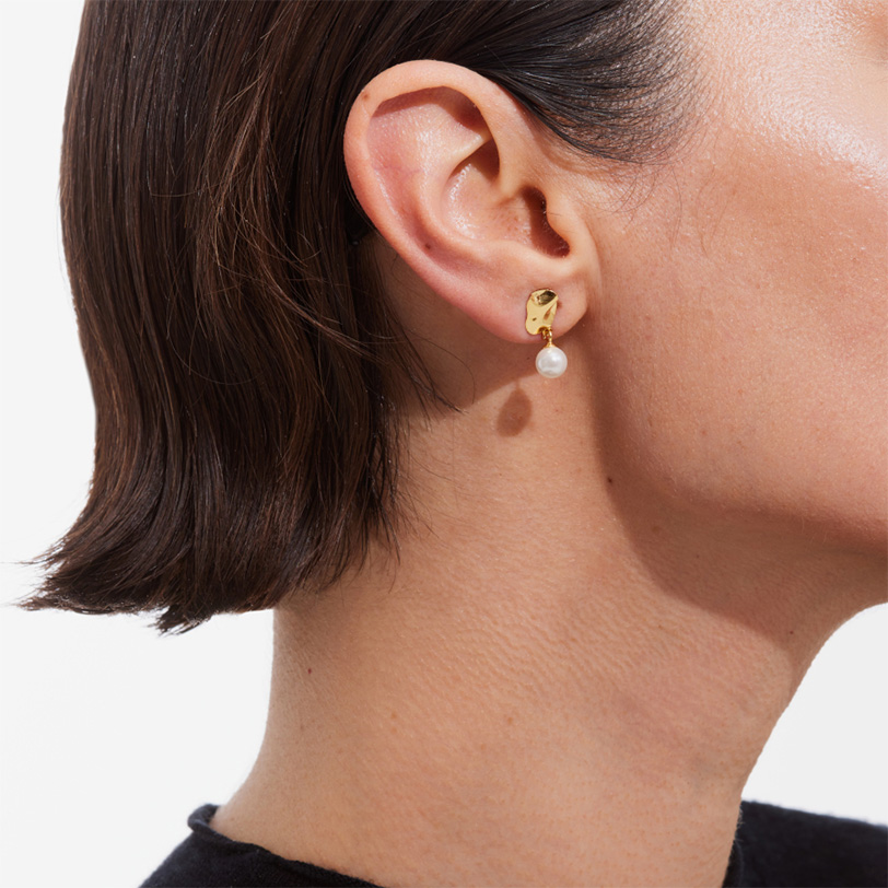Κομψά γυναικεία σκουλαρίκια από επιχρυσωμένο ασήμι 925 με κρεμαστό λευκό μαργαριτάρι.