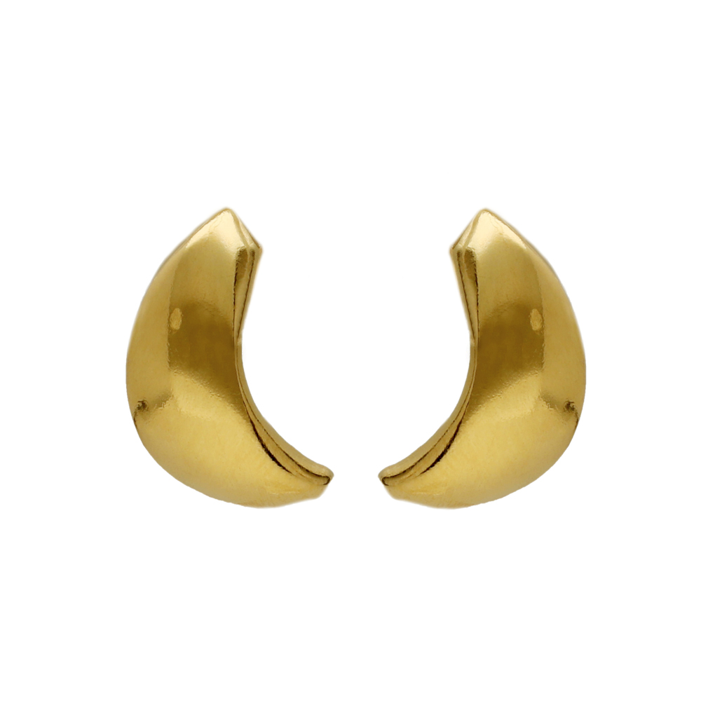 Μοντέρνα γυναικεία σκουλαρίκια κρίκοι από κίτρινο επιχρυσωμένο ασήμι 925 σε σχήμα μισοφέγγαρου.