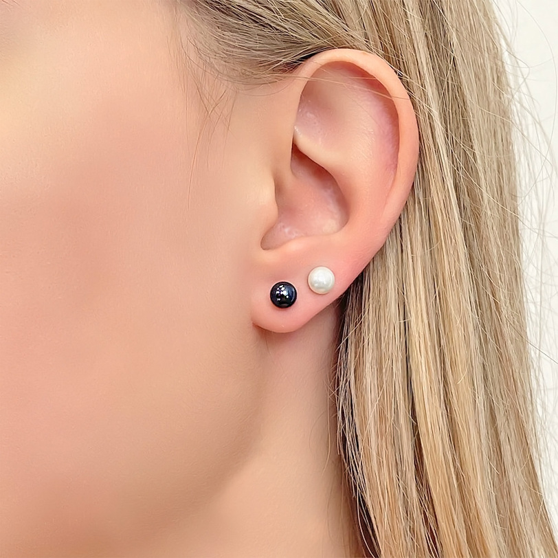 Κομψά γυναικεία σκουλαρίκια από κίτρινο χρυσό Κ14 με μαύρα μαργαριτάρια γλυκού νερού Fresh Water Pearl διαμέτρου 5,5 – 6,0 χιλιοστών σε σχήμα Button (κουμπί) ποιότητας 6A.