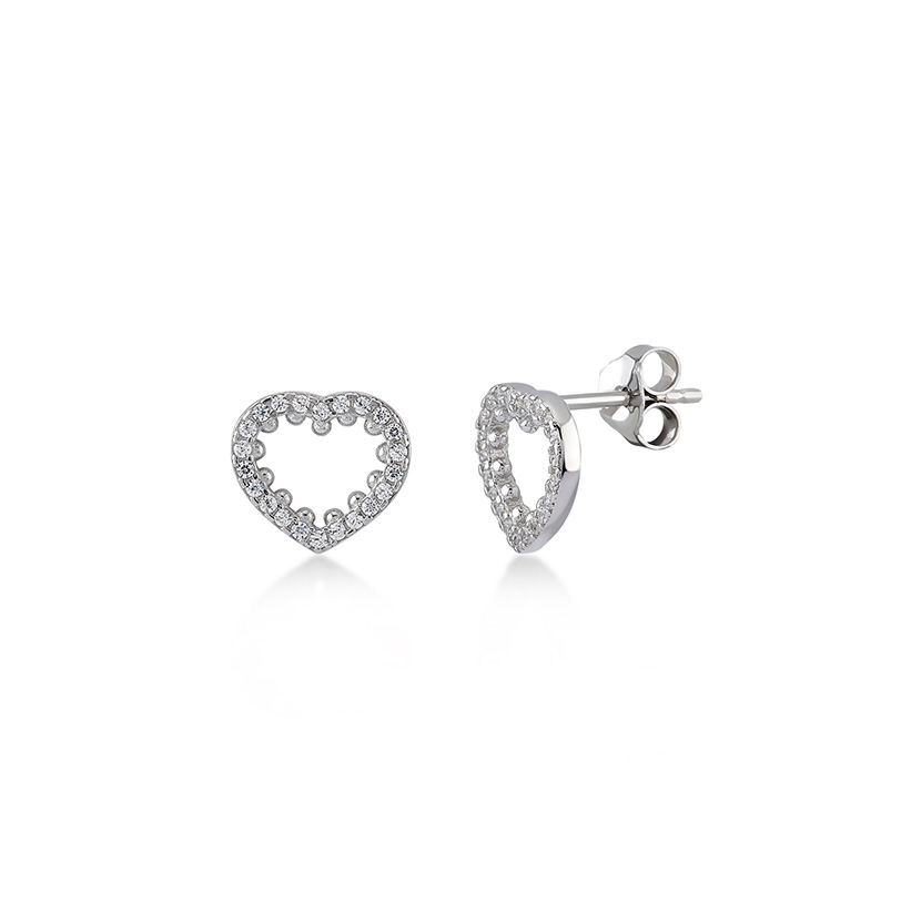 Μοντέρνα γυναικεία σκουλαρίκια καρδιά από επιροδιωμένο ασήμι 925 με ζιργκόν.