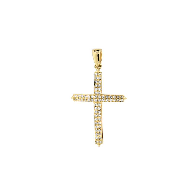 Κομψός πολύτιμος σταυρός με σειρέ από διαμάντια σε όλο το μήκος και το πλάτος του.